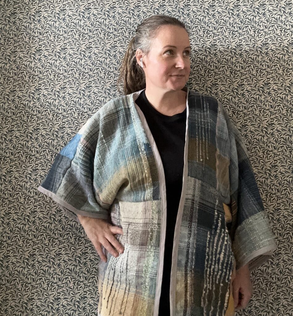 I’m currently weaving with a Saori loom and I know there are books I can get to help create garments from Saori woven fabrics but alas, when inspiration strikes for me, I don’t have the patience to wait for them to ship to me. I am also really keen to try some of Get Weaving with Sarah’s patterns, but wanted to start with something a little easier.